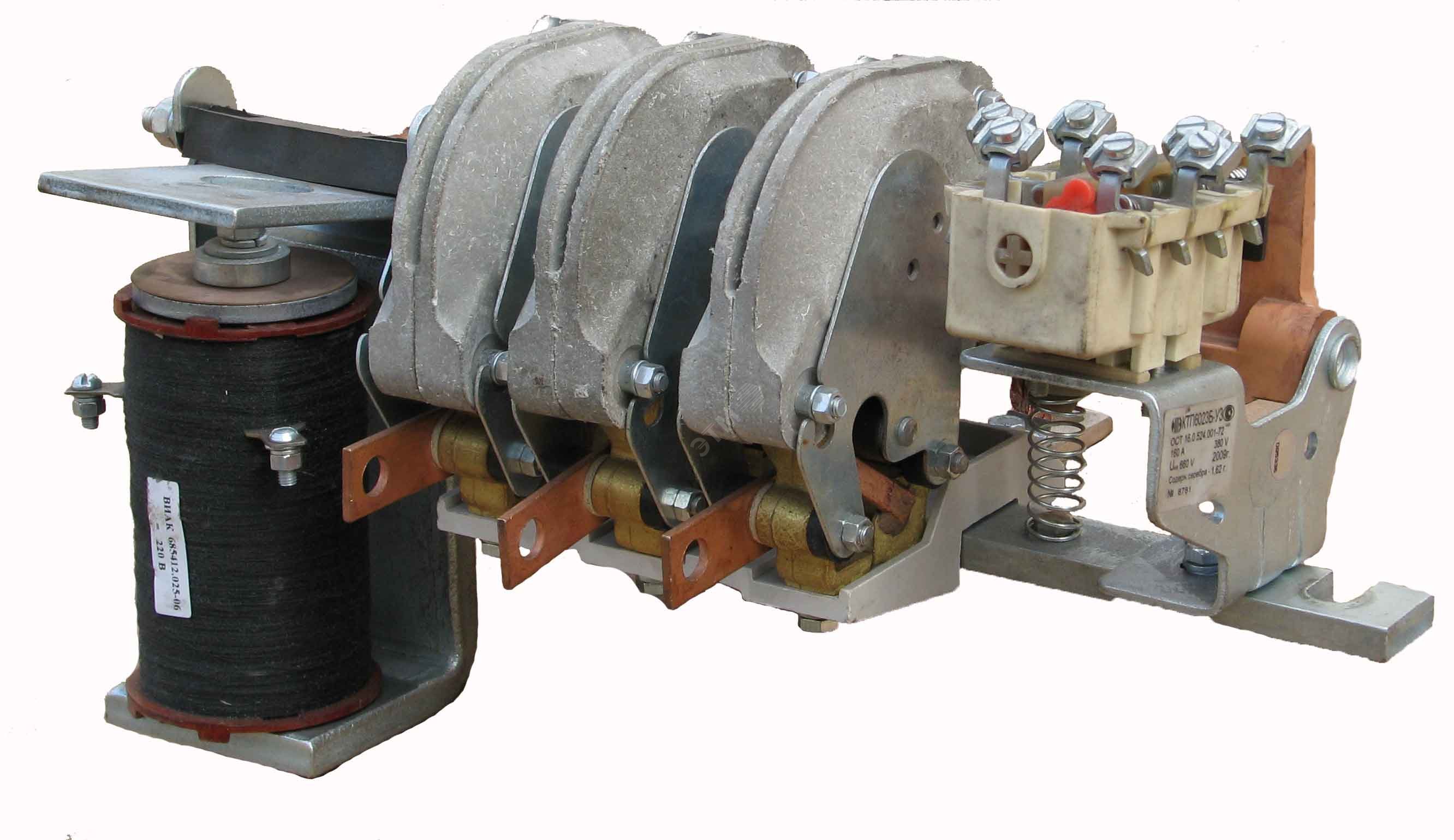 Контактор трехфазный, имеет три силовых контакта для пропускания тока и коммутации приемников электрической энергии. Предназначен для работы под нагрузкой, т.е. при протекании токов по силовой цепи не превышающих номинальных значений, для контактора КТП 6013 Iном=100 А. Возникающая электрическая дуга в месте разрыва силовых контактов эффективно гасится с помощью дугогасительных камер. Управление контактором осуществляется постоянным током 220 В. Блок-контакты собраны по схеме: 2з+2р.