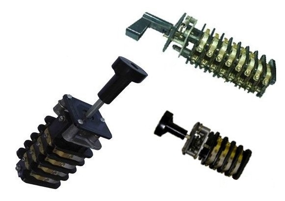 Переключатели изготавливаются с числом секций от 2-х до 16, с фиксацией или самовозвратом рукоятки в нулевое положение. Особую группу составляют переключатели с замком, у которых рукоятка может сниматься. Каждый тип переключателя имеет свои диаграммы замыкания.